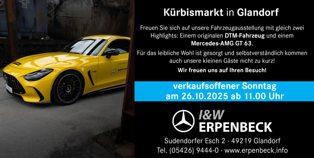 Am Sonntag, den 26.10.2025, findet bei uns in Glandorf der Kürbismarkt statt!
